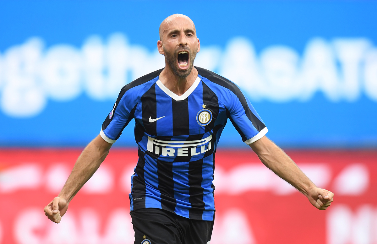 Soccer Football - Serie A - Inter Milan v U.S. Sassuolo - San Siro, Milan, Italy - June 24, 2020 Inter Milan's Borja Valero celebrates scoring their third goal, as play resumes behind closed doors following the outbreak of the coronavirus disease (COVID-19) REUTERS/Daniele Mascolo