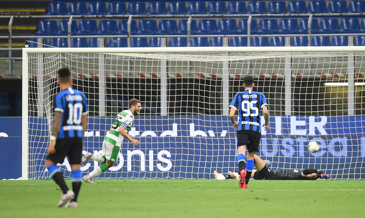 Instead, Domenico Berardi equalised with a penalty in the 81st minute and, although Borja Valero put Inter back ahead five minutes later, poor defending by the hosts allowed Giangiacomo Magnani to equalise in the 89th minute.