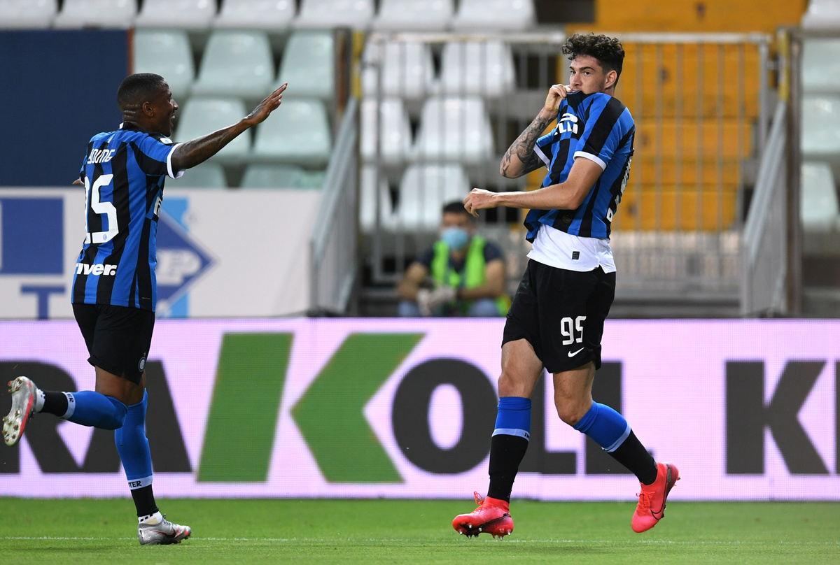 Soccer Football - Serie A - Parma v Inter Milan - Stadio Ennio Tardini, Parma, Italy - June 28, 2020 Inter Milan's Alessandro Bastoni celebrates scoring their second goal, as play resumes behind closed doors following the outbreak of the coronavirus disease (COVID-19) REUTERS/Jennifer Lorenzini