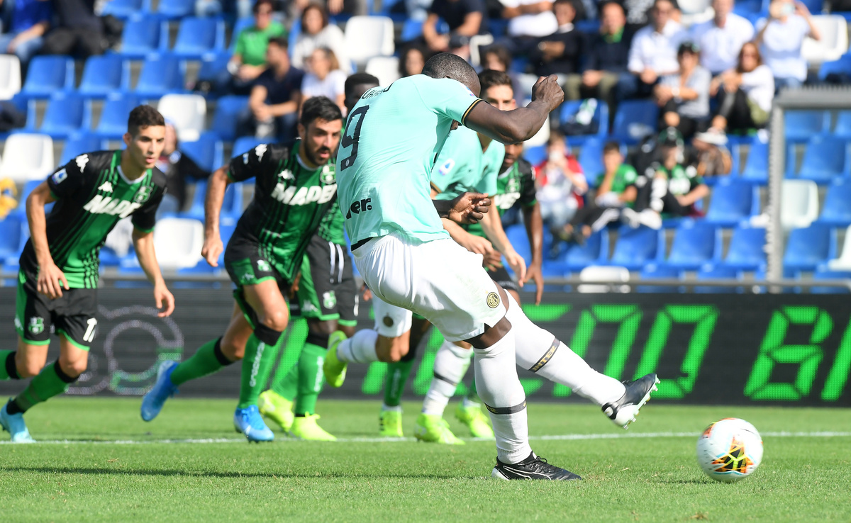 Martinez struck inside two minutes before Domenico Berardi equalised, but Lukaku gave Inter breathing space with a powerful strike and a penalty before half time.