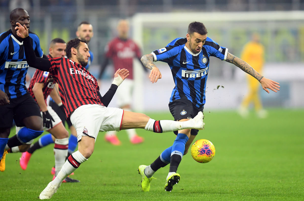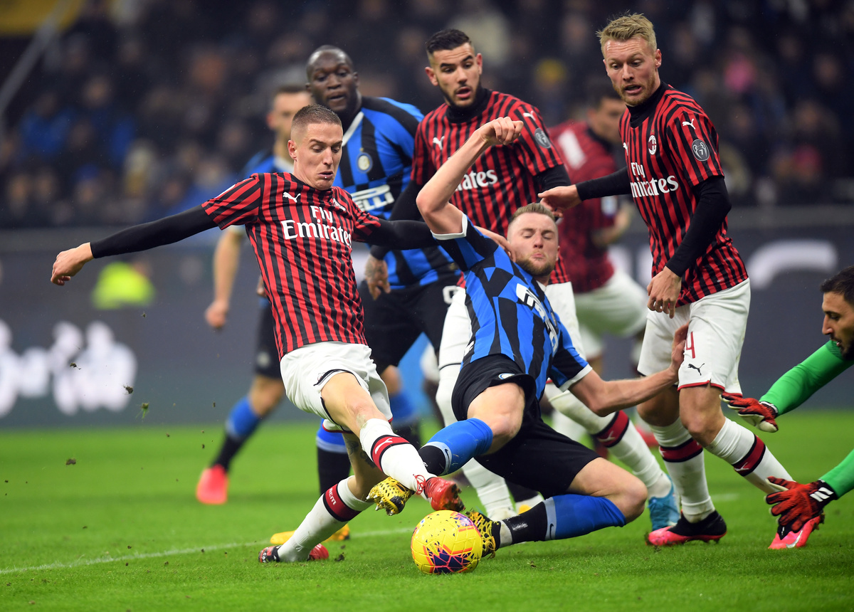 Inter move into first place on goal difference, after catching Juventus on 54 points following their 2-1 defeat by Hellas Verona on Saturday, while Milan are 10th with 32 points.