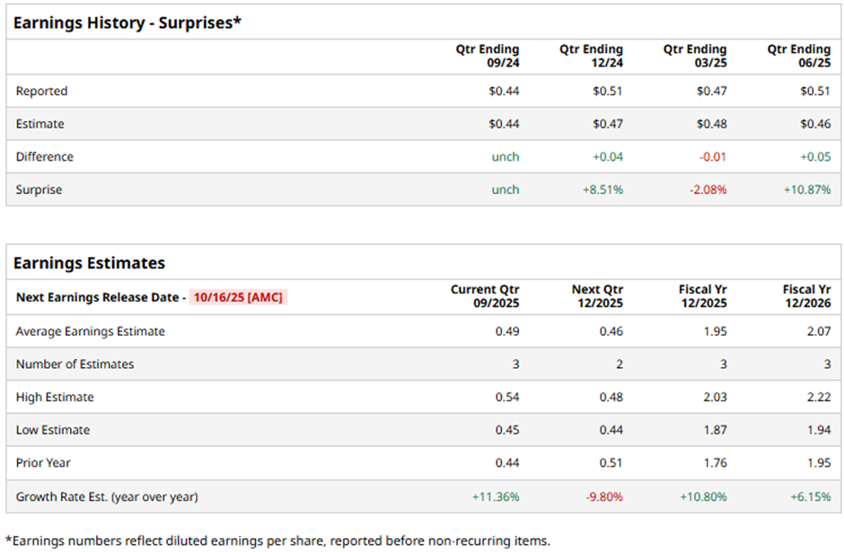 The Greenwich, Connecticut-based company is expected to announce its fiscal Q3 2025 earnings results after the market closes on Thursday, Oct. 16. Ahead of this event, analysts expect IBKR to report an adjusted EPS of $0.49, up 11.4% from $0.44 in the year-ago quarter. It has exceeded Wall Street's earnings estimates in three of the last four quarters while missing on another occasion.