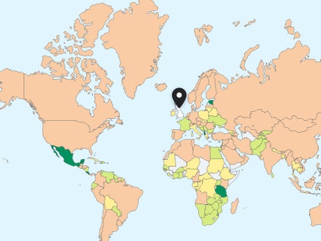 Most countries are currently pink – meaning entry is restricted – but as the vaccine rollout continues in many countries at a pace, it’s likely that more places will start to move to yellow and green categories in the next few months.