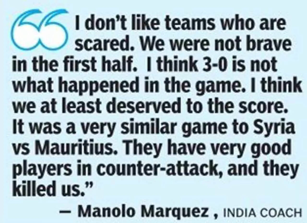 Syria defeated Mauritius 2-0 in their opening match and ended the roundrobin league with six points. India and Mauritius finished the tournament with a point each after their goalless draw on Sept 3. The highest-ranked team after the round-robin league wins the tournament, there is no final.