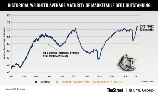 The U.S. Treasury typically targets a five-year duration profile for its issuance, but in recent years it has been issuing securities with a much longer duration.