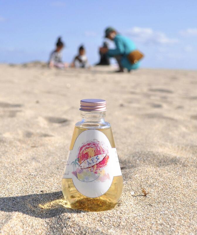 After multiple discussions that took place over the course of a month, the students and staff suggested a round glass bottle that could easily fit into a person's hand. The 200-milliliter sake bottle's label depicted a silhouette of a woman carrying a surfboard with the breeze in her hair and a red sun in the background.