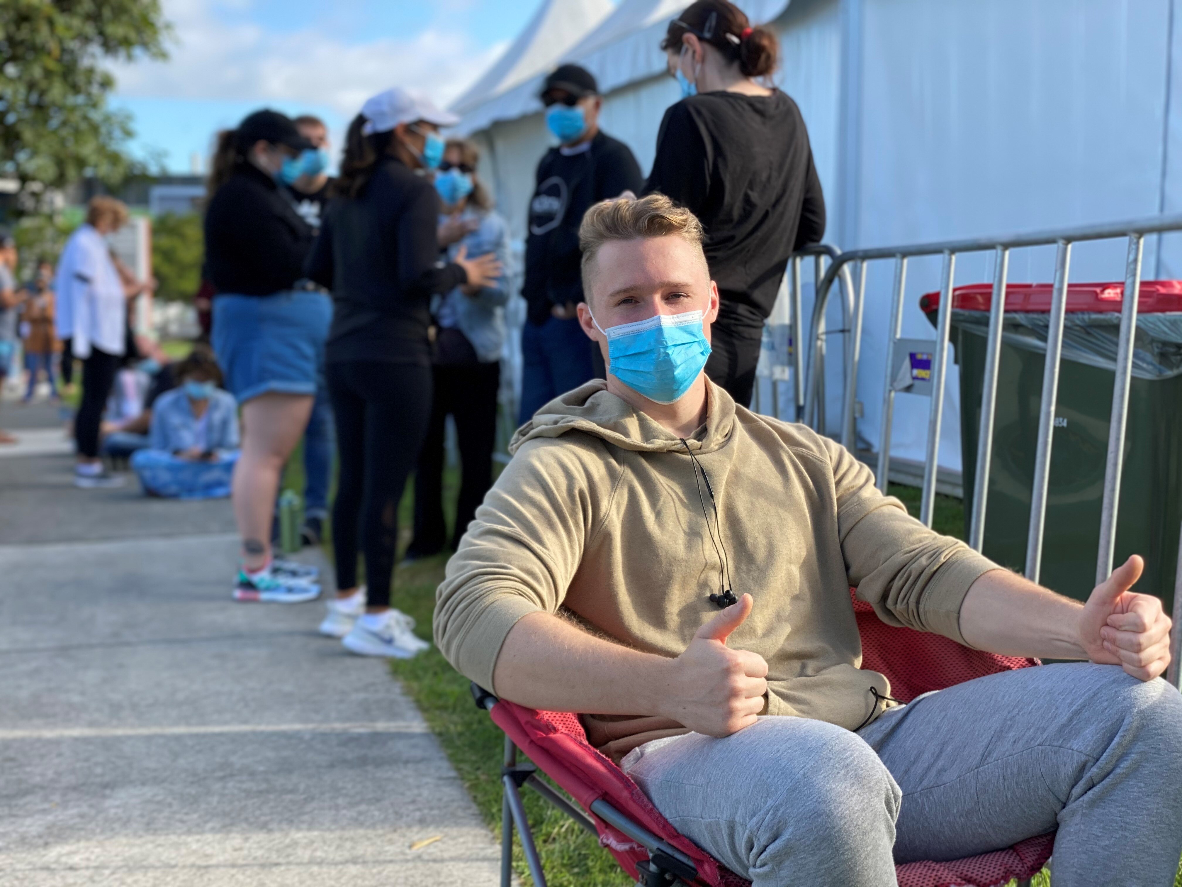 Jesse Crouch was one of hundreds who waited in line at a testing clinic in Robina on Tuesday, after a work colleague, who later tested negative, fell ill.