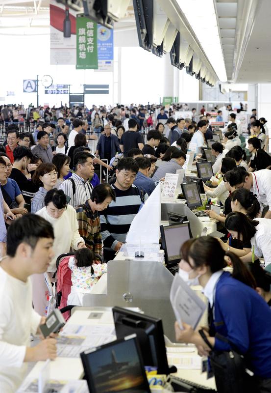 SAPPORO -- Foreign tourists and others forced to spend the night at New Chitose Airport formed long lines at airline ticket counters as international flights resumed Saturday.