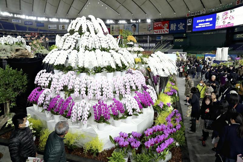 Visitors gather for the 29th annual Japan Grand Prix International Orchid and Flower Show 2019 at Tokyo Dome in Bunkyo Ward, Tokyo, on Friday. The show, organized by The Yomiuri Shimbun and other entities, began the same day and will run through Feb. 22. About 100,000 orchids of 3,000 varieties from 18 countries and regions will be displayed, while visitors can also appreciate roses, tulips and other flowers in a separate area at the venue.