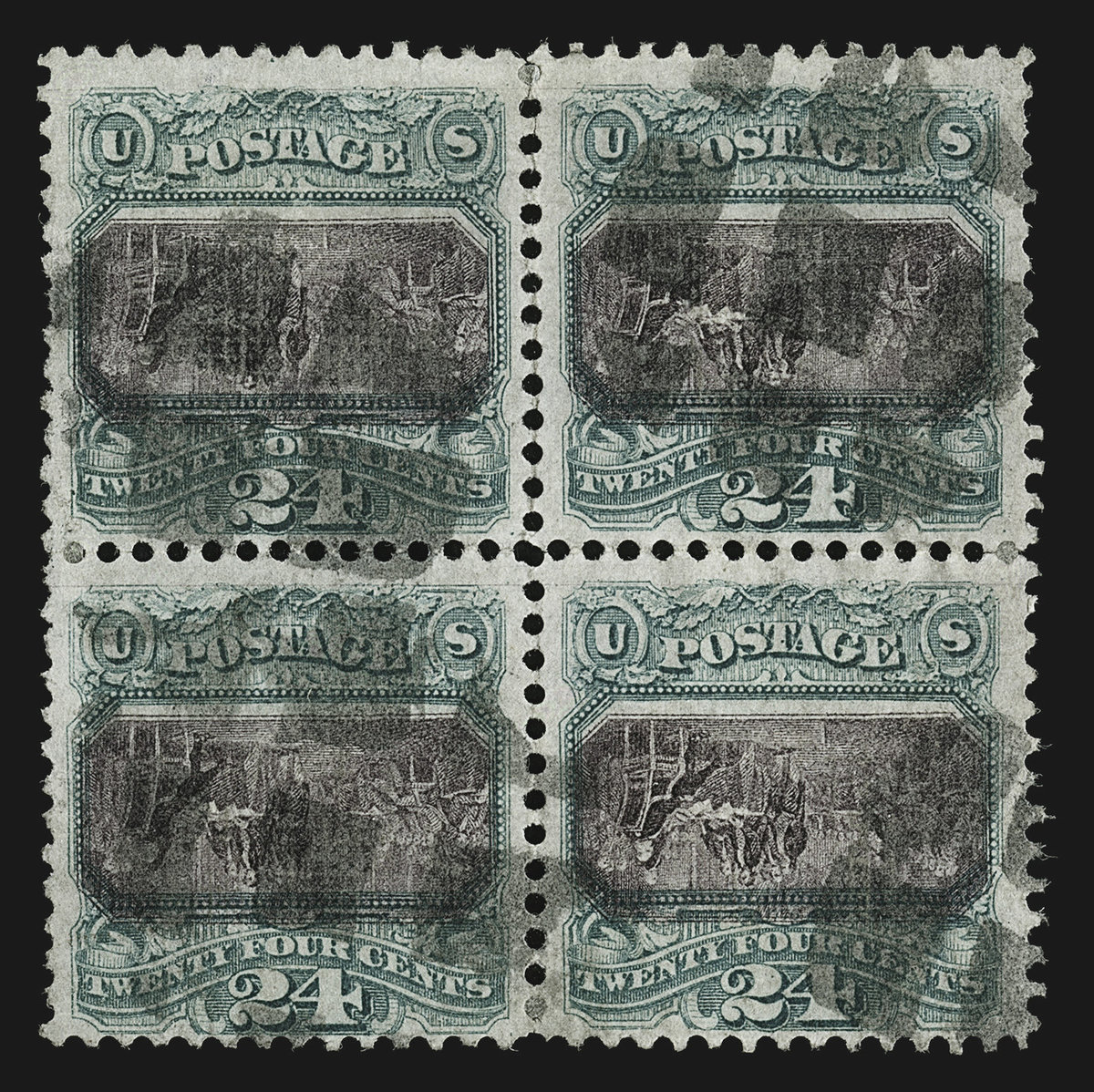 The most valuable stamps in the collection may be a set of four, 24-cent-stamps from 1869 that depict American artist John Trumbull's painting "Declaration of Independence" upside down. The inverted stamps were part of the first batch of multi-colored stamps the Post Office printed, and could sell for $1 million.