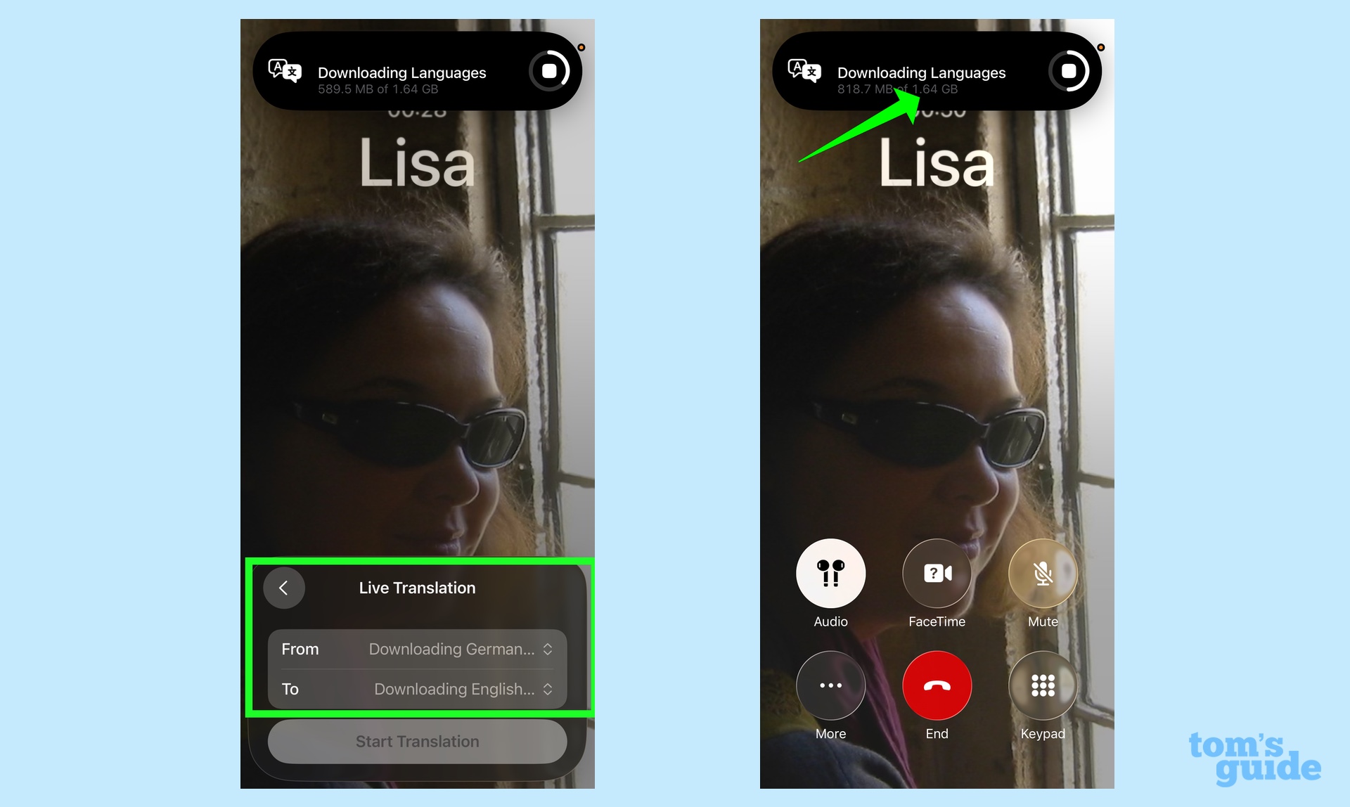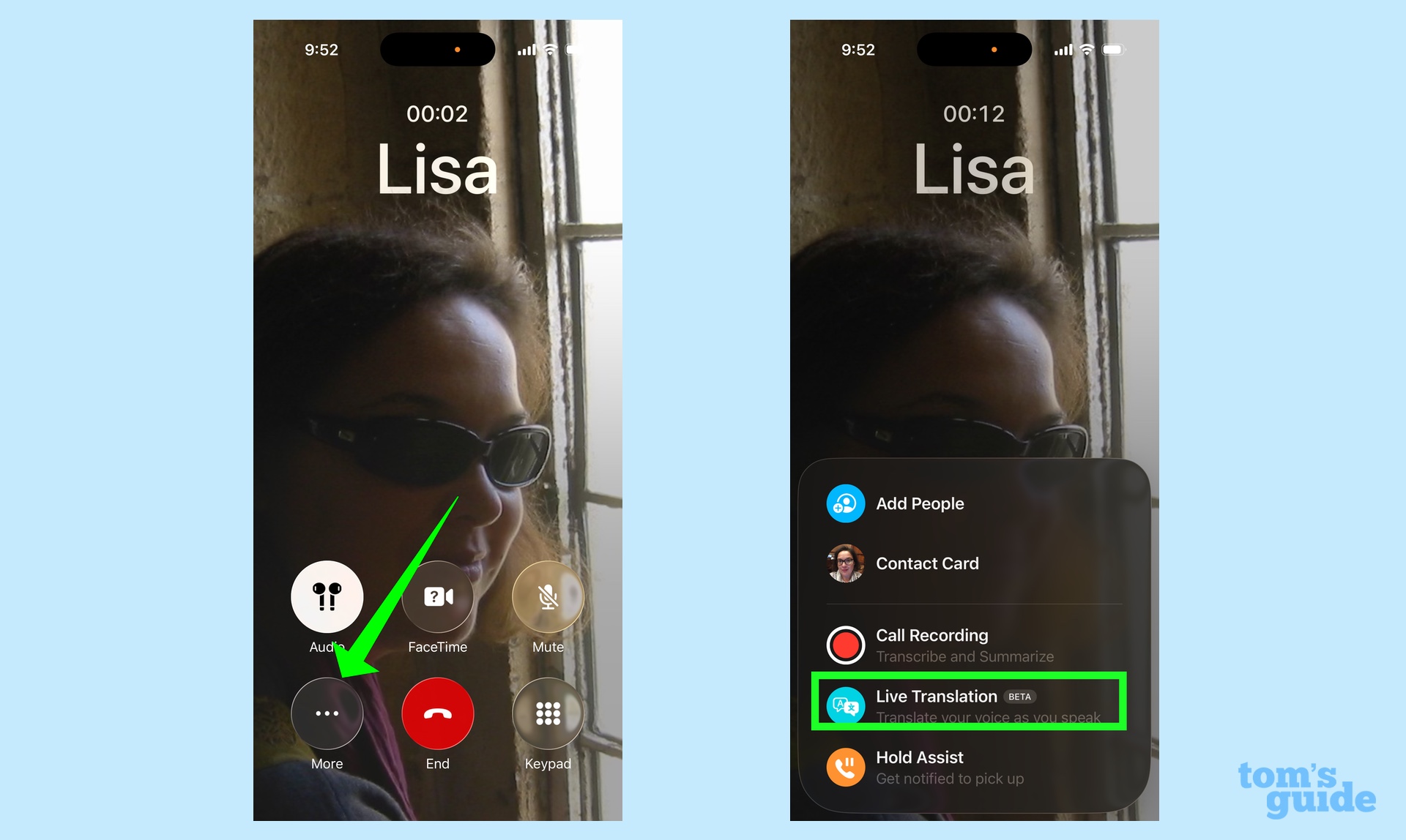Now you're ready to leap right into a call with Live Translations. Just repeat the process from Step 1 — tapping the More button followed by Live Translation — and the interpreter will launch into action without any delay to download languages.