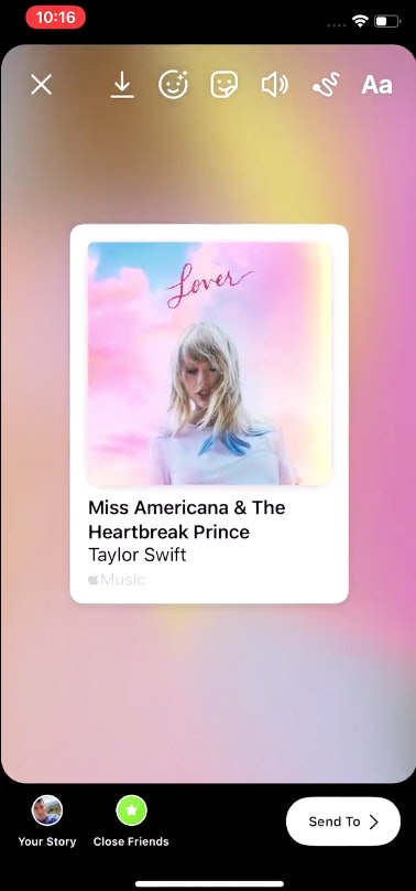 In the new iOS 13.4.5 developer beta, Apple Music will display an option to "share" songs across Facebook and Instagram stories. All a user will need to do is tap the "share" button under the Contacts and AirDrop bar, and then share their chosen tune on Facebook or Instagram. Doing so will yield a photo of the album they're listening to along with the song title. If another Instagram or Facebook user viewing the post has Apple Music themselves they'll be able to open the track in the app.