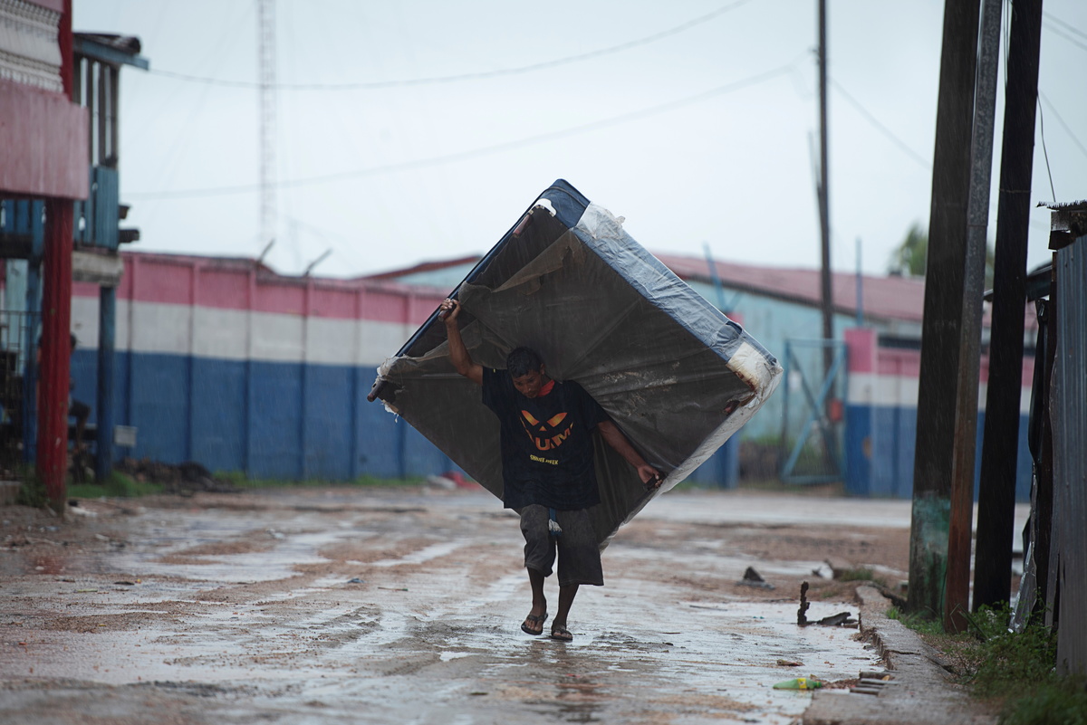Reuters images showed rain spattering the partially flooded beachside city of Puerto Cabezas on Nicaragua's coast, and wind rattling the roofs of its one-story buildings.