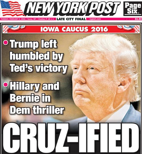 Donald Trump, the self-professed winner of all things, looked more like a loser going into the next stages of the Republican nomination race after voters in Iowa unexpectedly pushed him into second place – delivering instead a solid victory to Senator Ted Cruz of Texas.