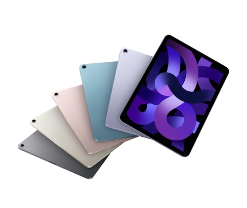 Other differences between the iPad Air 5 and M1 iPad Pro include two speakers versus four, mid-band (sub-6 GHz) 5G versus mid-band and mmWave, a regular USB-C port instead of a USB-C port that supports Thunderbolt/USB 4 speeds, and multiple anodized aluminum colors (five versus two). And, of course, the iPad Air 5 comes with only two storage capacities (64GB and 256GB) compared to the M1 iPad Pro's storage which starts at 128GB and goes up to 2TB.