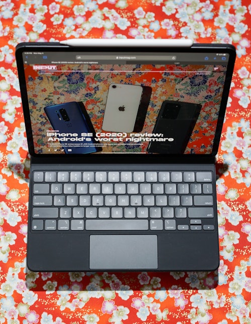 Easily the best part of the Magic Keyboard is the typing experience. The 12.9-inch version I’ve been testing has the same full-size keys as my 2019 work 13-inch MacBook Pro. The only difference is that it has five rows of keys instead of six (the Touch Bar for function keys).