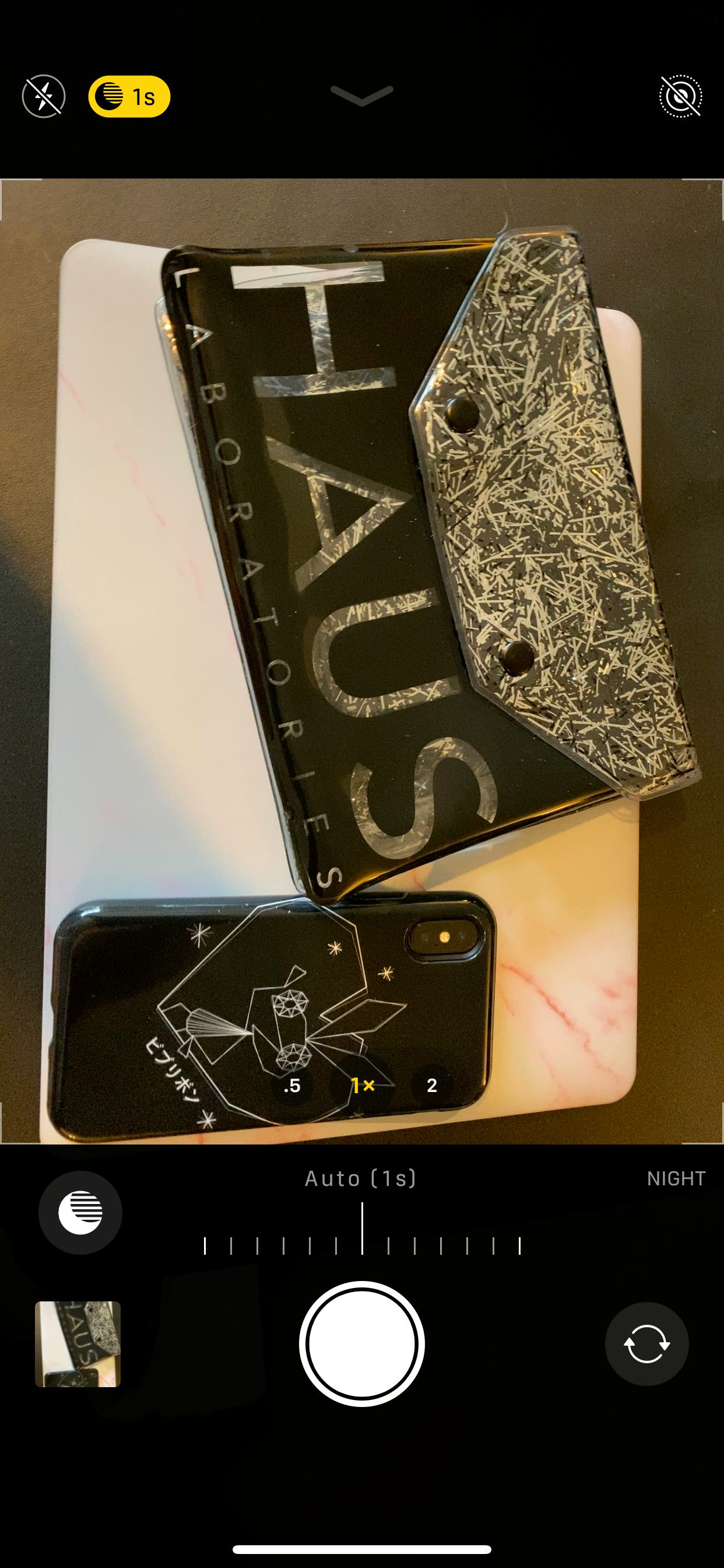 To see if Night Mode is active, look at the icon in the top left of your screen. It looks like a full moon with lines through it, and it'll be yellow if Night Mode is currently on. Beside it, you'll see a number like "1s." That indicates how long it will take for you to capture a photo. You'll have to make sure you don't move during this time, as your photo may blur, so pay attention to that time.