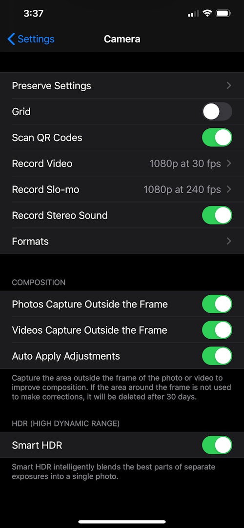 Your phone can also capture photos outside the frame as well, which you can turn on by heading into the Settings app, choosing Camera, and then toggling Photo Capture Outside the Frame. This is especially useful if you end up taking a photo that's cropped a little too far in and need to zoom out after your picture has already been taken. You have to make sure it's toggled on for it to help, but you may find that it comes through in a pinch the next time you're on vacation and miss that one vital thing you were hoping came through in the photo!