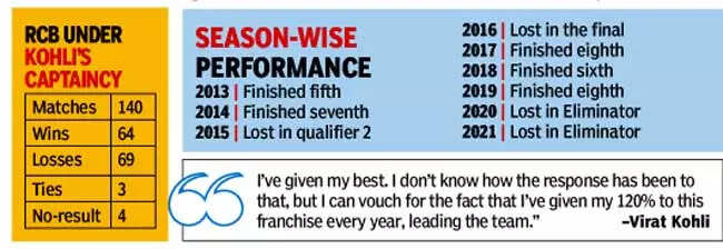 Outlining his efforts, Kohli added, "All I can say is that I've given my best. I don't know how the response has been to that, but I can vouch for the fact that I've given my 120% to this franchise every year, leading the team."
