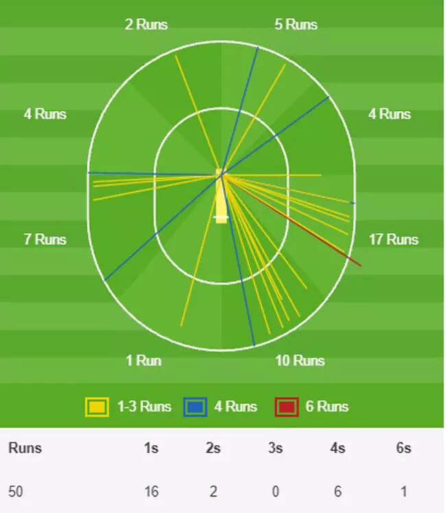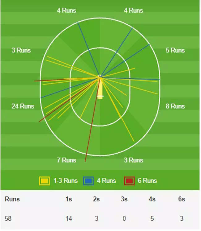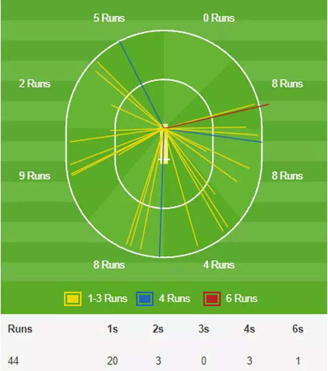 Parag ran Kohli out with a direct hit: Kohli (25 off 20 balls) looked set to play a captain's knock after getting a start, but Riyan Parag pulled off a brilliant play in the field to find the RCB skipper short of the crease with a direct hit. In the space of 10 runs, RCB lost both their openers and were in need of urgent repair.