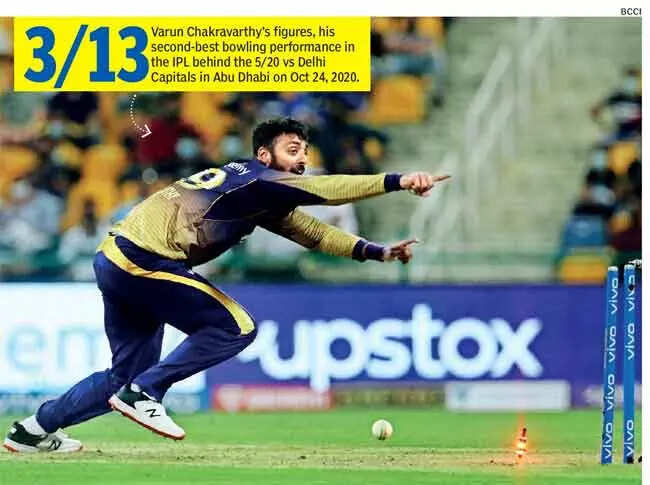 Chakravarthy returned in the 12th over of the innings and struck on consecutive deliveries to put the death kneels on the RCB coffin. Varun got dangerman Glenn Maxwell out first when the Aussie missed the line going for a wild swing to be clean bowled.