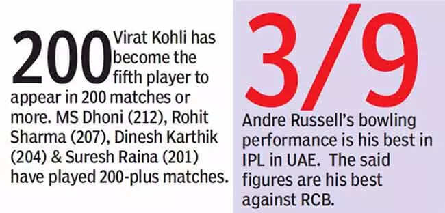RCB debutant KS Bharat perished trying to pull the medium pacer, only to be caught by Gill at deep mid-wicket. Russell then claimed the prized wicket of AB de Villiers, who returned for a golden duck, unable to dig out a crashing yorker on the leg-stump.