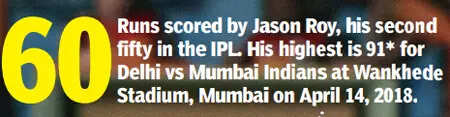 Roy justified the move with a 60 (42b, 4x8, 6x1) and infused some life into the flagging spirits of Sunrisers Hyderabad as they successfully picked up the pieces to register their second win of the tournament — an emphatic seven-wicket victory over Rajasthan Royals.