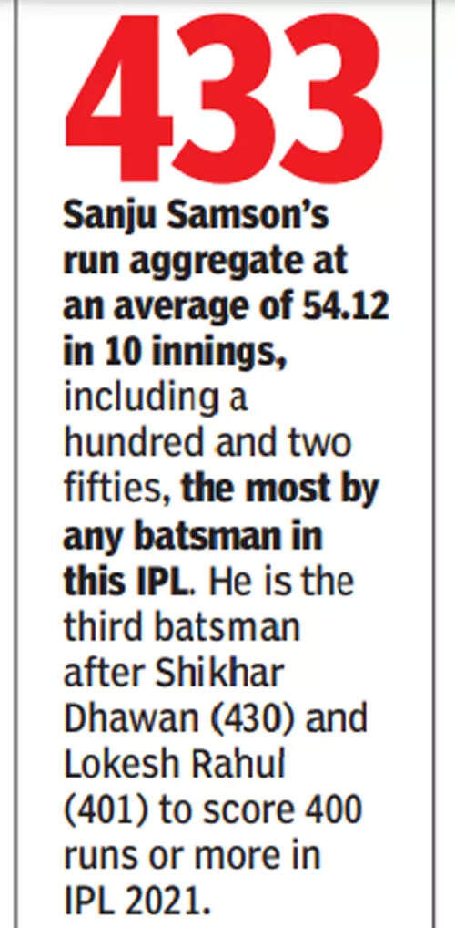 Yashasvi Jaiswal (36; 23b, 5x, 6x1) added 56 for the second wicket with Samson and though Jaiswal and Liam Livingstone fell in quick succession, the skipper continued his good work to become the Orange cap holder with 433 runs.