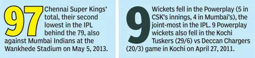 The game, though, was set up by Mumbai’s pace trio of Jasprit Bumrah, Sams (3-16) and Riley Meredith (2-27) in the first half. Five wickets in the Powerplay was like a dream for Mumbai Indians and it broke the back of CSK.