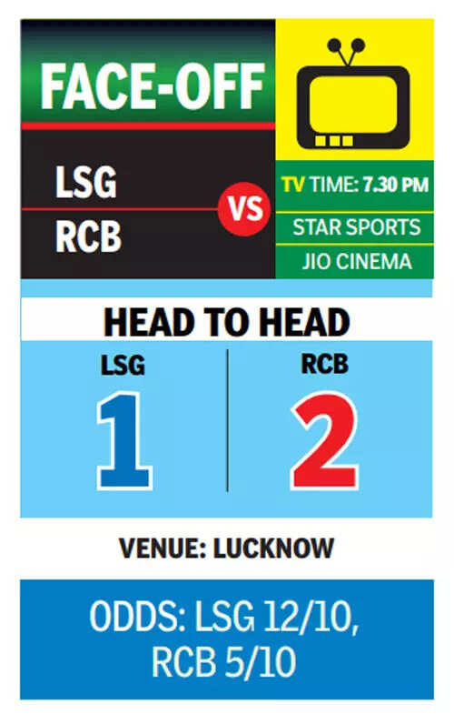This will be the second clash of these two teams this season. In the first encounter, LSG pipped RCB by one wicket, chasing down 213 off the last ball of their innings.