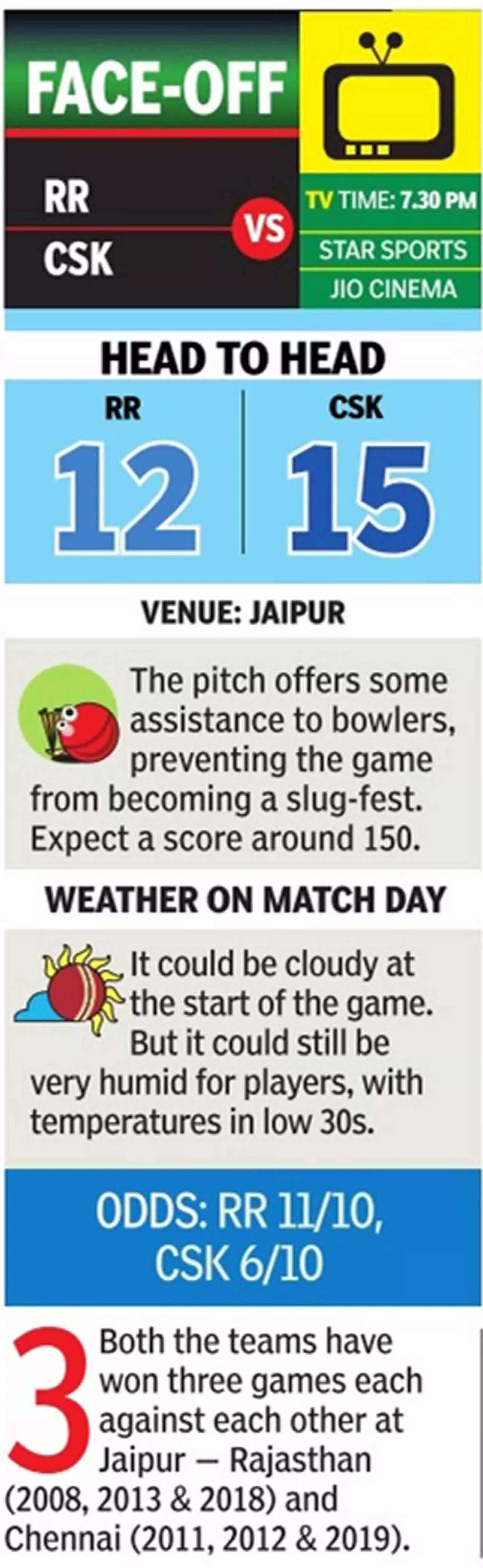 JAIPUR: Rajasthan Royals and Chennai Super Kings made contrasting starts to their IPL season this year. While the Royals had a dream opening and maintained their position at the top for nearly three weeks, CSK overcame a scratchy beginning to jump to the top of the table with 10 points.