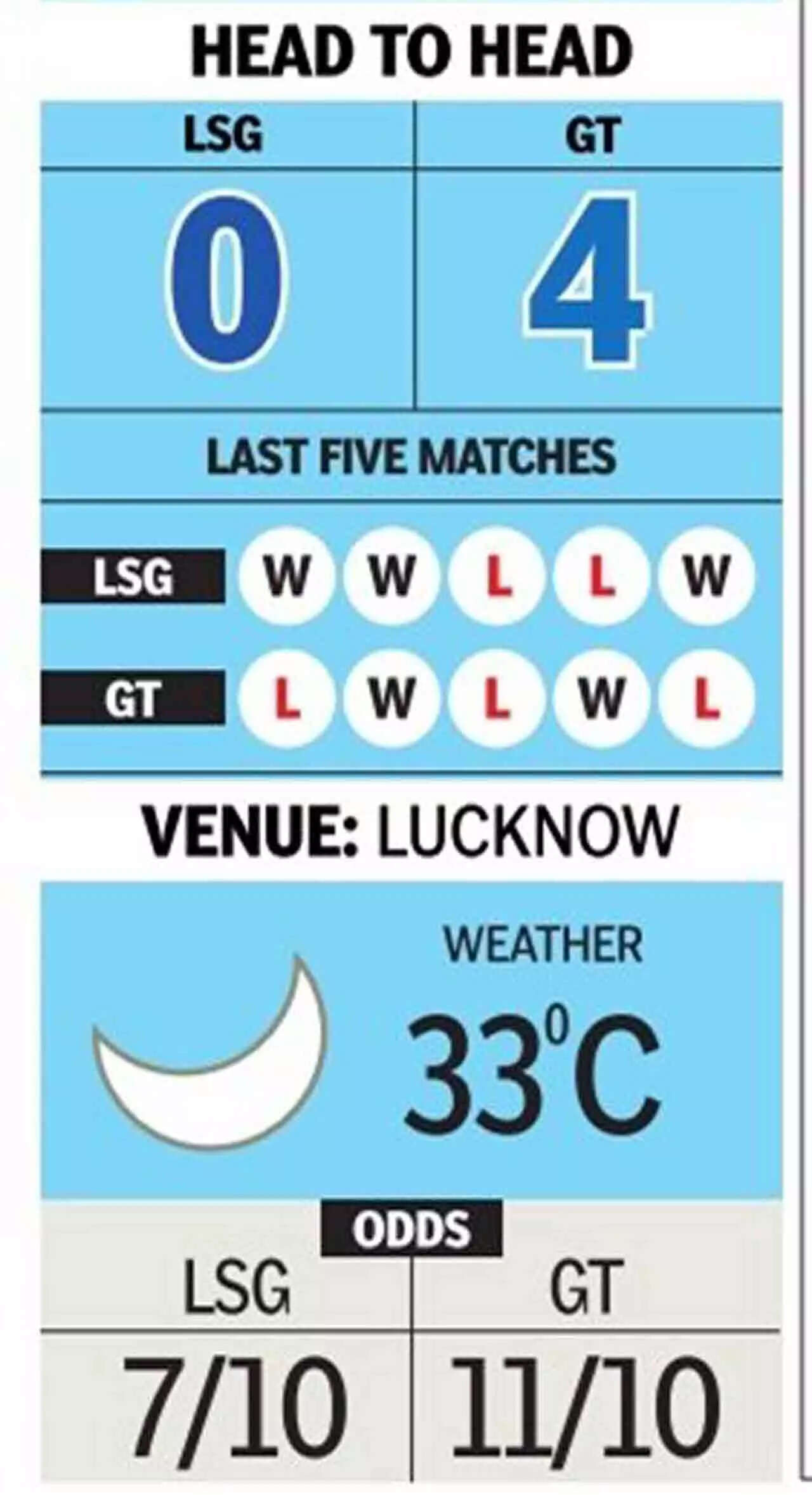The Titans, led by young captain Shubman Gill, have played four matches with two victories and two defeats and need to win against LSG to strengthen their position.