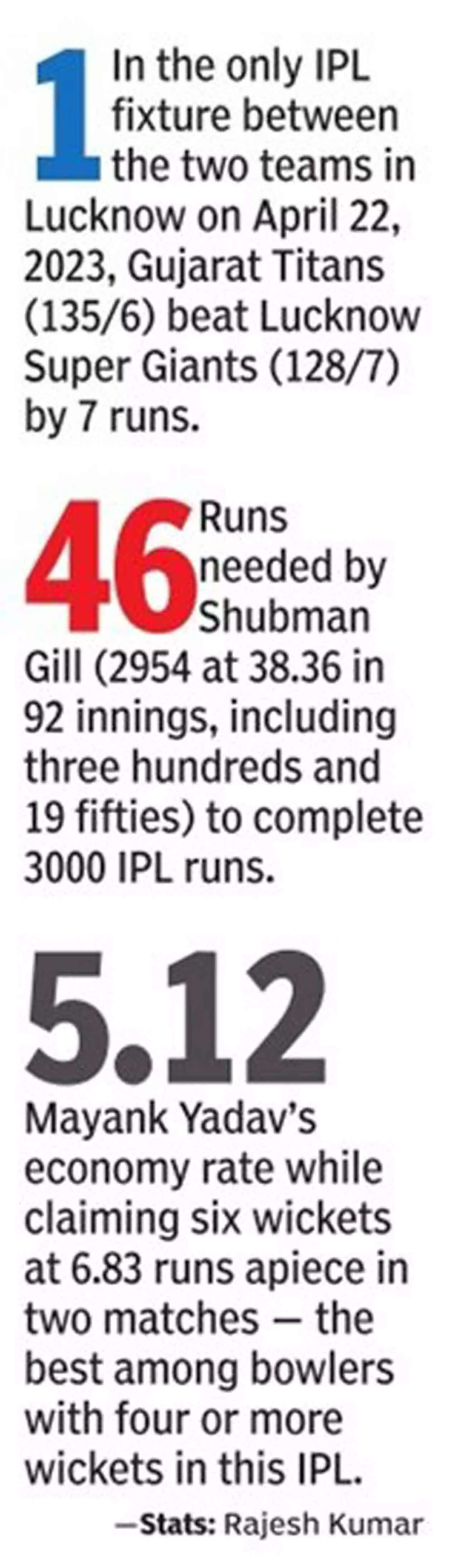 LUCKNOW: The Lucknow Super Giants (LSG) will bank heavily on their 21-year-old star pacer Mayank Yadav as they look forward to scoring a hat-trick of victories against Gujarat Titans at Ekana International Stadium on Sunday.
