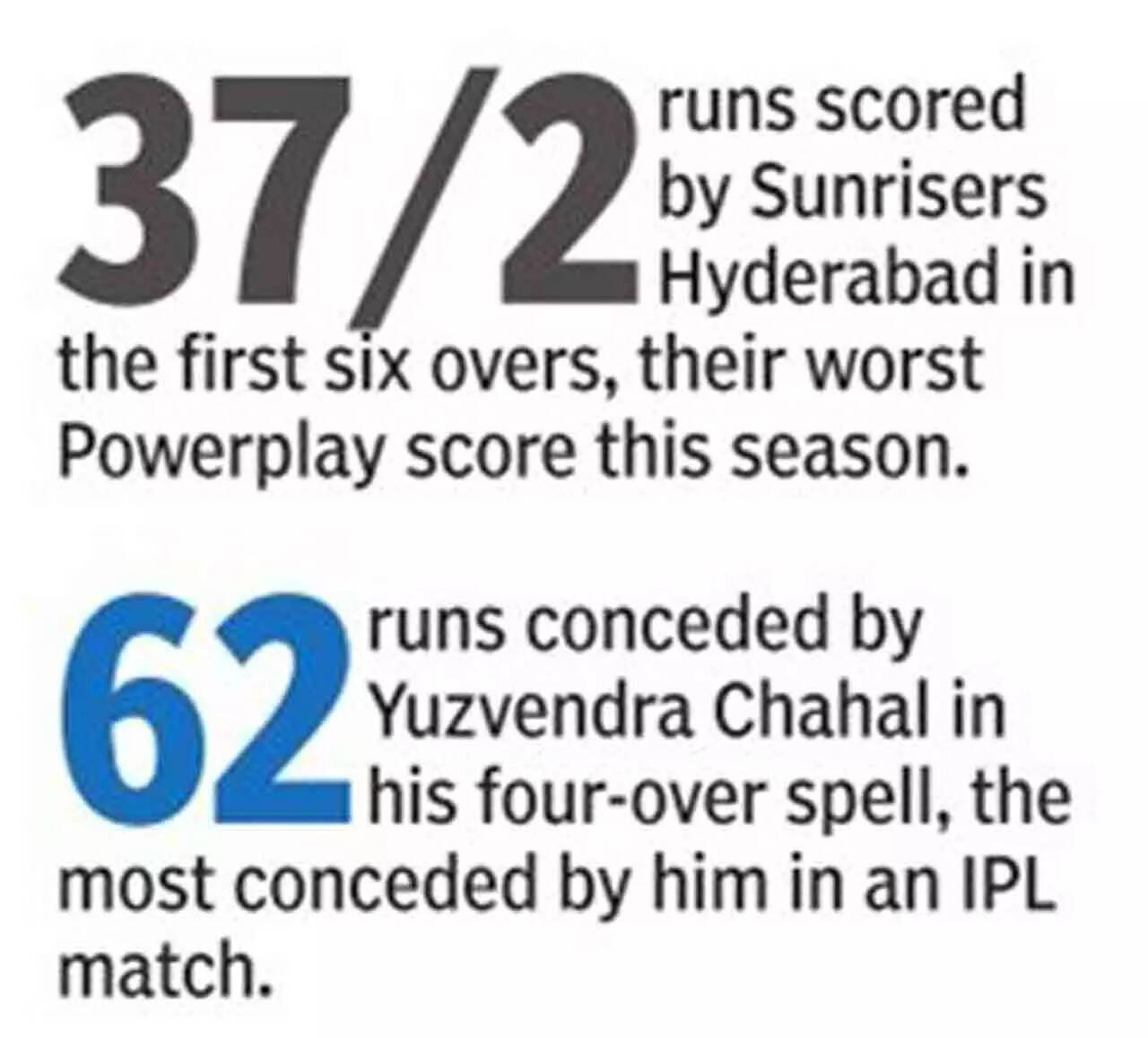 Sunrisers staged a late comeback through the brilliance of Bhuvneshwar (3/41), Pat Cummins (2/34) and T Natarajan (2/35) to restrict the Royals to 200/7. Needing 27 off three overs, Natarajan and Cummins gave away seven runs and picked up a wicket each in the 18th and 19th overs respectively.