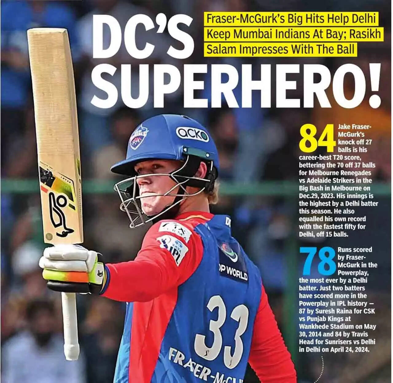 Fraser-Mcgurk's big hits help Delhi keep Mumbai Indians at bay; Rasikh Salam impresses with the ball