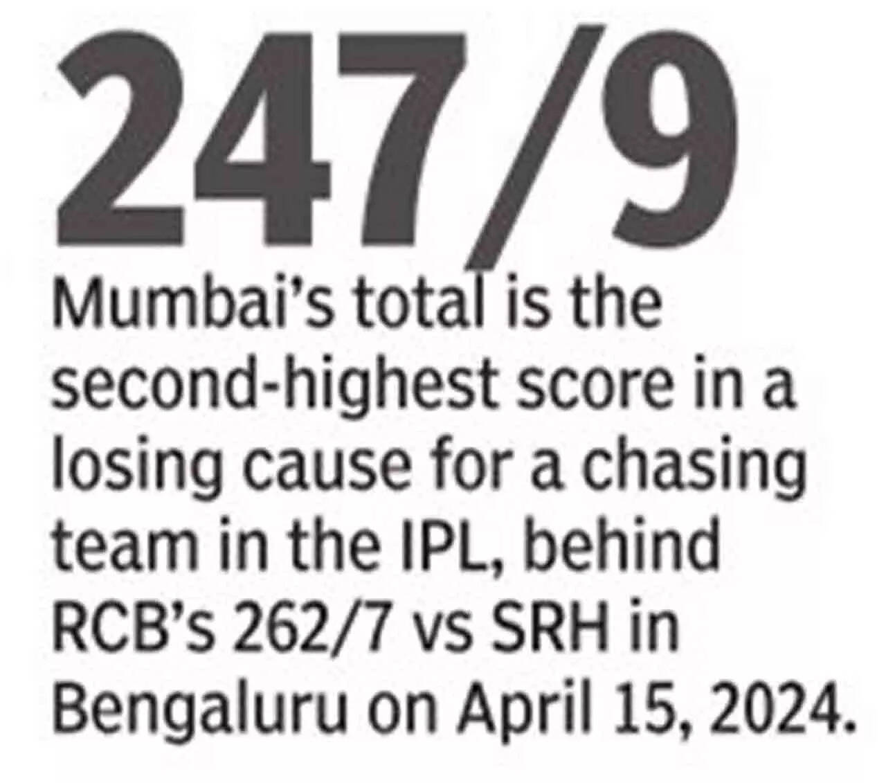 It was nearly matched by Tilak Varma's elegant striking that fetched him a 32-ball 63, aided by skipper Hardik Pandya's 24-ball 46 and Tim David's powerful 17-ball 37.