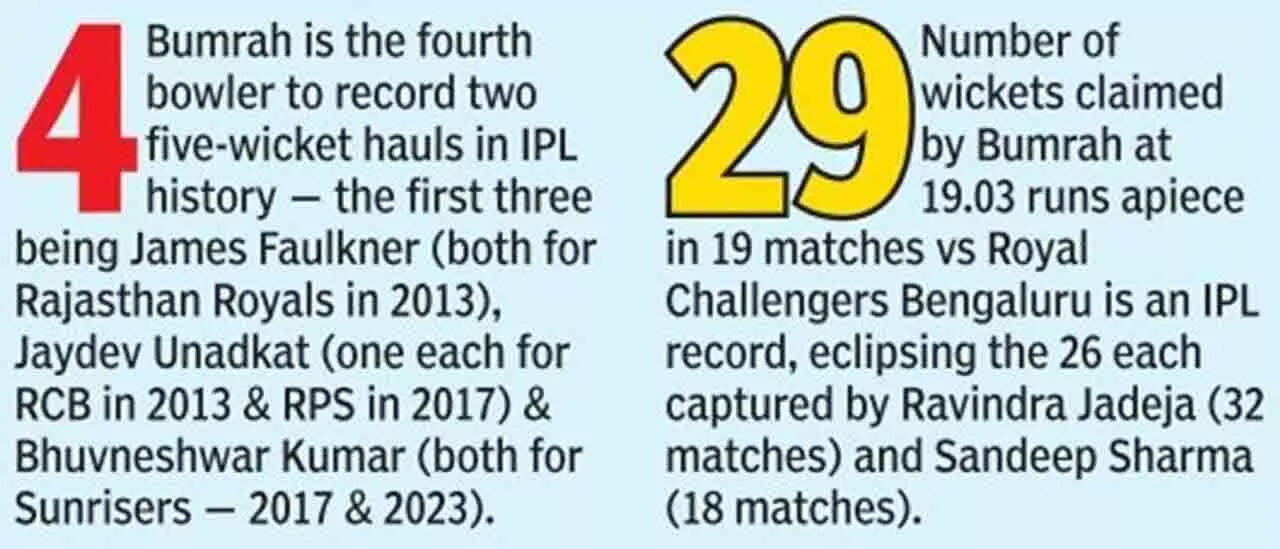 That Kohli had got off to a slow start and with the pressure of upping the ante piling up, he decided to take on Bumrah-a wrong option considering how accurately the right-arm pacer has bowled this season. It resulted in his downfall. Bumrah ended up with figures of 5-21-his second five-wicket haul in IPL-but RCB still ended up scoring 196-8 thanks to half-centuries from skipper Faf du Plessis (61, 40b; 4x3, 3x6), Rajat Patidar (50, 26b, 3x4, 4x4) and Dinesh Karthik (53, 23b; 5x4, 4x6).