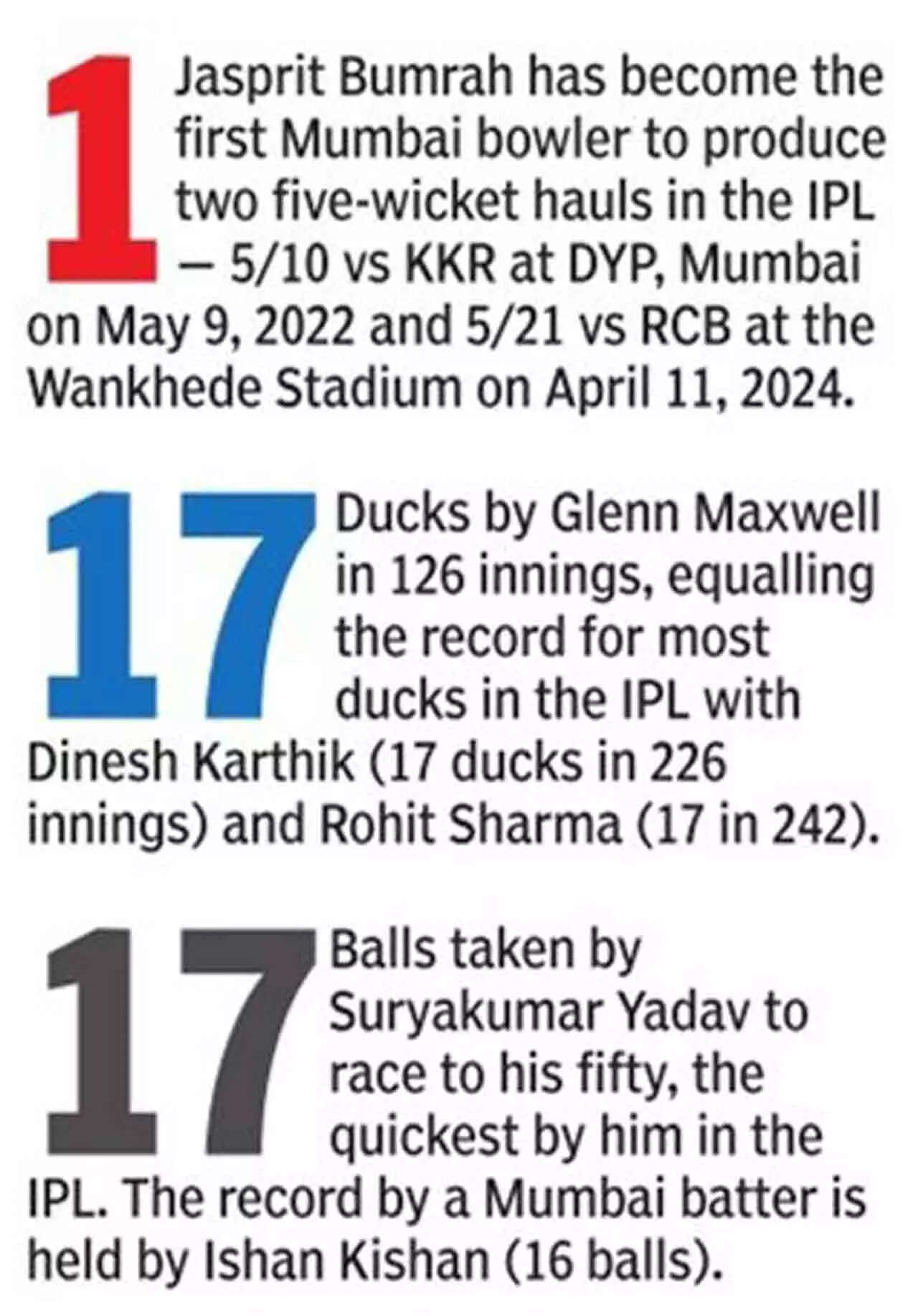 Suryakumar Yadav-playing only his second match after returning from an injury-had got out for a duck in the last match against Delhi Capitals but he was in no mood to take it easy against RCB. By the time he was back in the pavilion, he had notched up 52 of just 19 balls-with five fours and four sixes-at a strike-rate of 273.68.