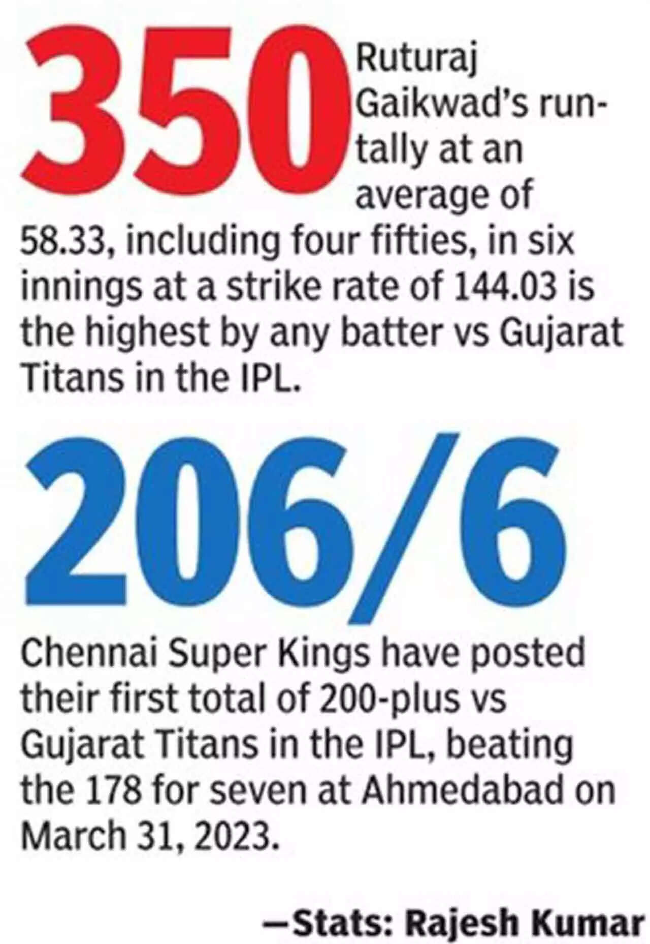 <p>Rachin Ravindra from New Zealand contributed with an explosive 46 runs and took three catches, aiding CSK to their second consecutive IPL victory with a commanding 63-run win over Gujarat Titans.<br /></p>PTI3/10:Ruturaj and Rachin