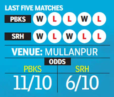 Punjab Kings aim to adopt an aggressive approach to match Sunrisers Hyderabad's high-energy style in their Indian Premier League clash in Mullanpur on Tuesday. Both teams find themselves in the middle of the table with two wins and two losses each, desperate to break free from the logjam.