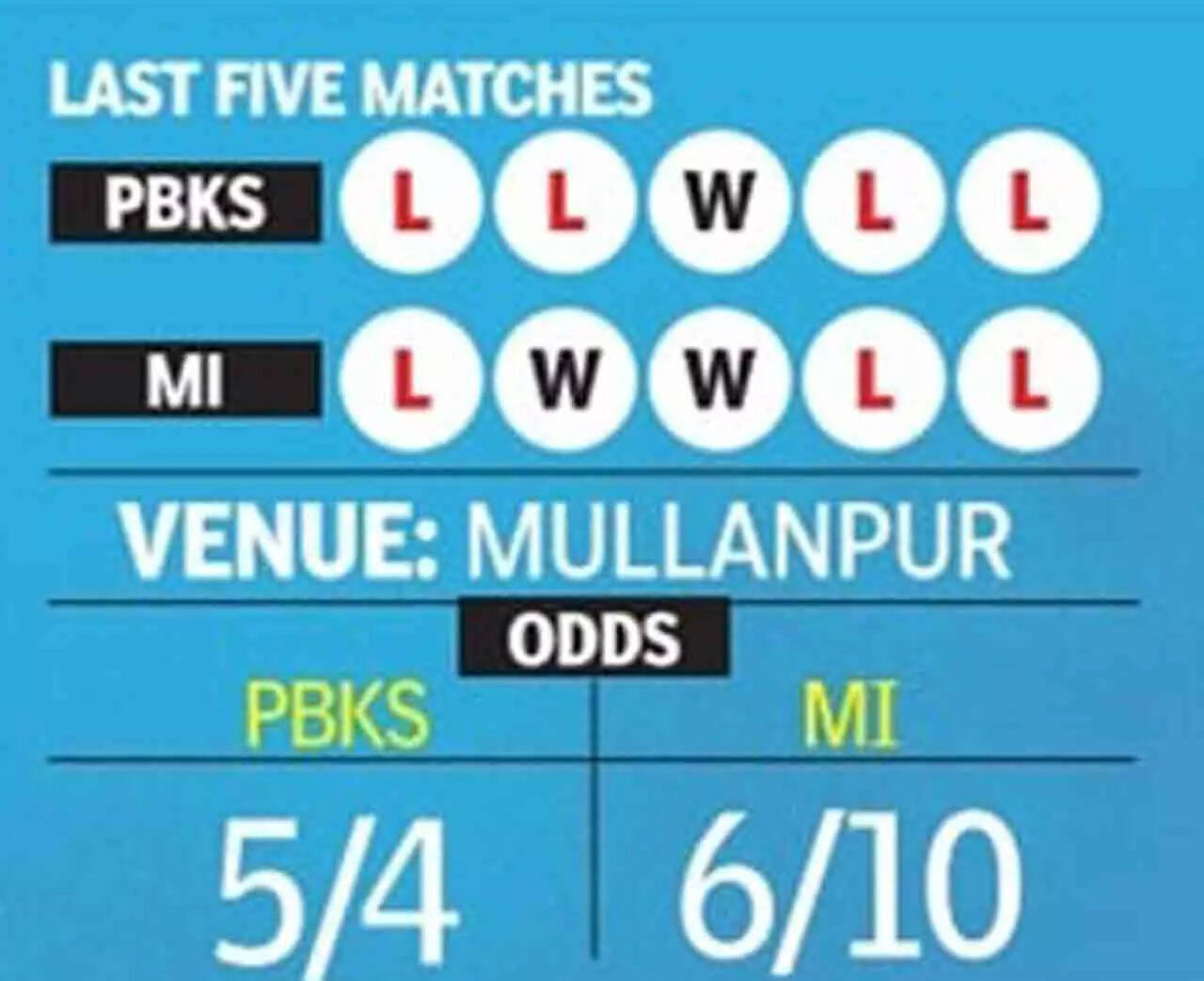Mumbai have a marginal edge with 16-15 record against the Punjab outfit in 31 clashes. Since 2020 as well, MI vs PBKS have been tightly fought contests with MI leading 4-3.