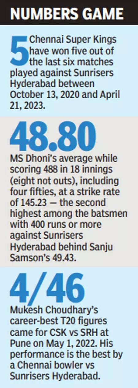 But the 20-run loss to DC in Vizag has exposed CSK top-order’s vulnerability against the moving ball, which the Sunrisers can capitalise on if Bhuvi gets into the act in powerplay.
