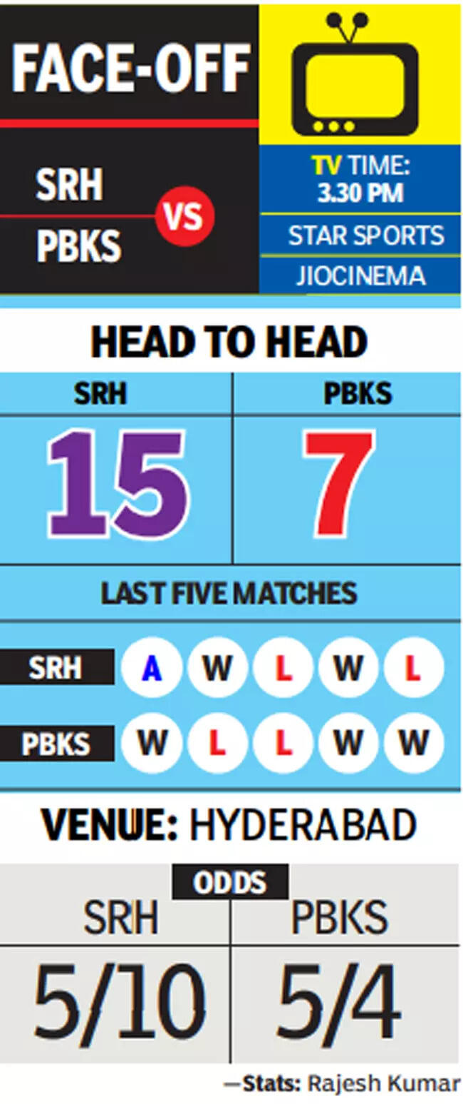 HYDERABAD: Having secured a place in the playoffs after the washout against Gujarat Titans on Thursday, Sunrisers Hyderabad will look to clinch a second-place finish in the points table when they take on depleted Punjab Kings at the Rajiv Gandhi International Cricket stadium on Sunday afternoon.