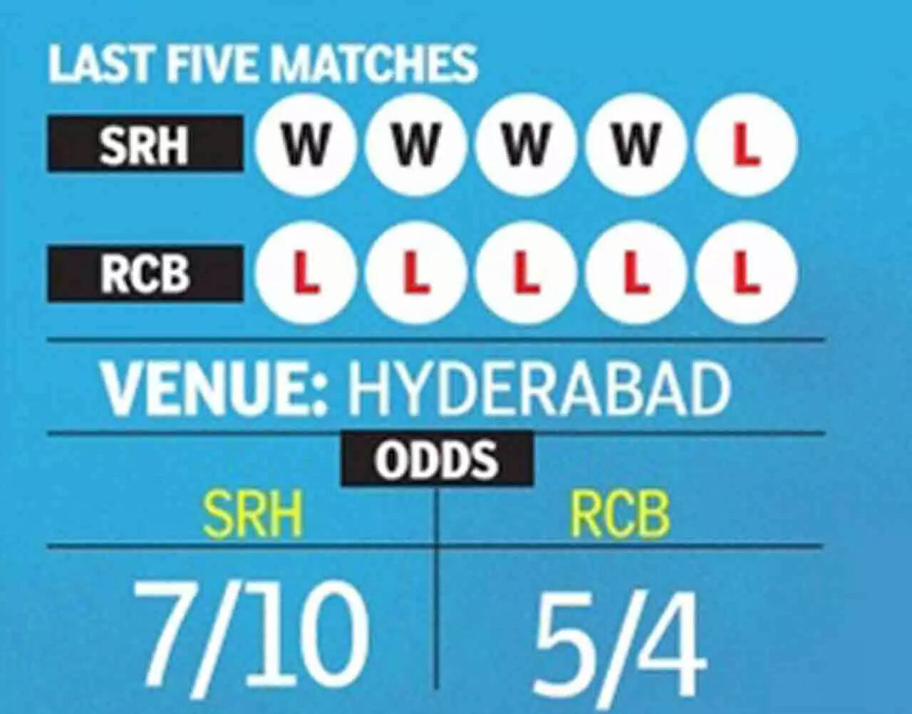 The hosts did well to take down Mumbai Indians with a record score (277/3) and Chennai Super Kings in their two matches here and would look to maintain home supremacy against a beleaguered RCB, who are struggling for answers on all fronts.