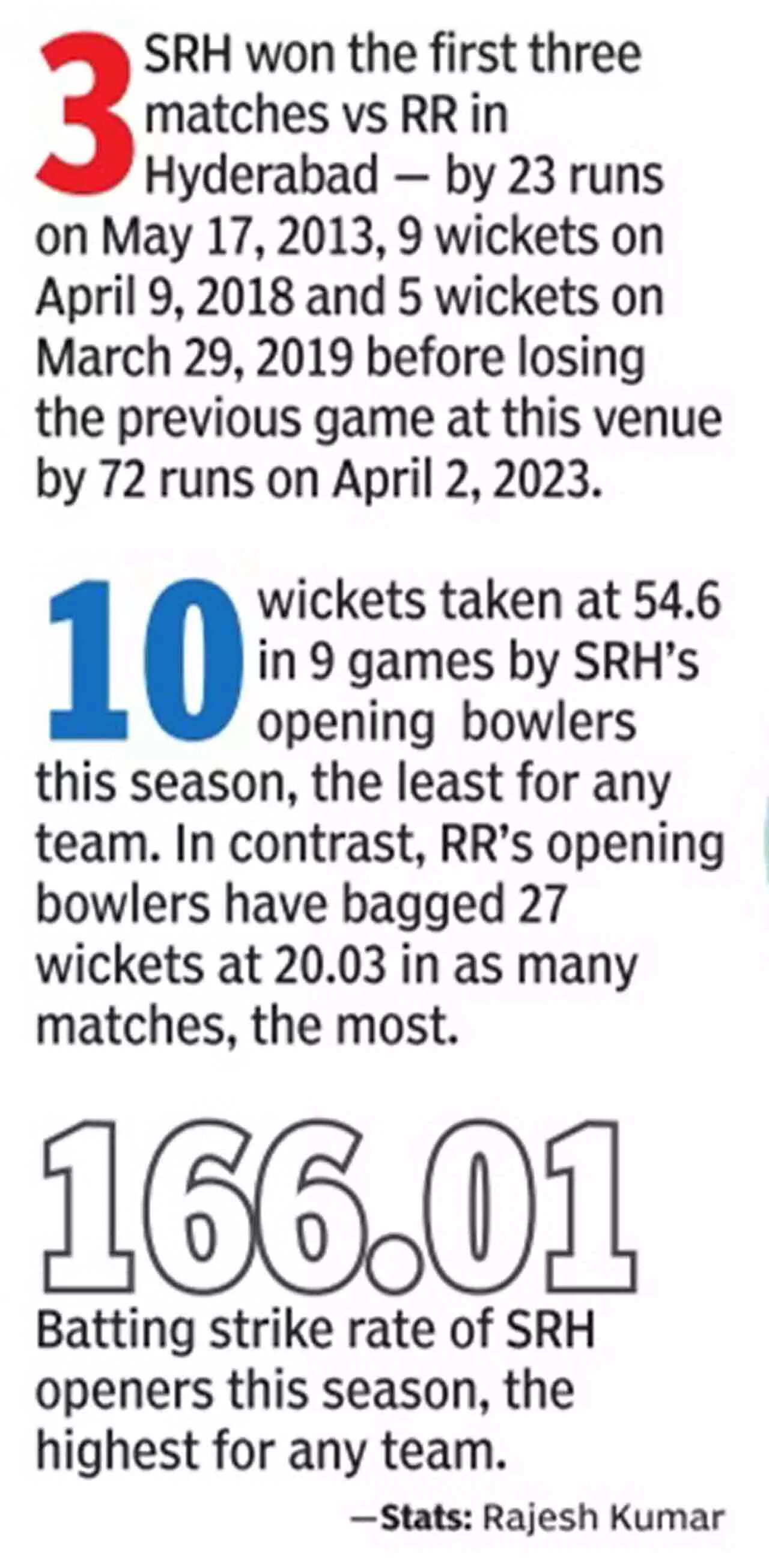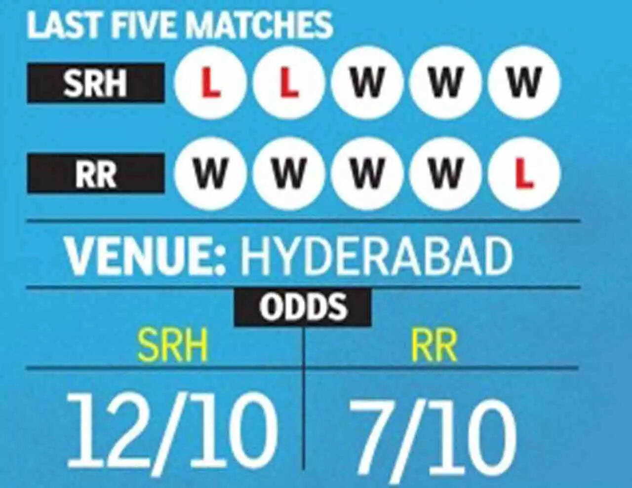 HYDERABAD: Stung by back-to-back losses, Sunrisers Hyderabad will be keen to get back to winning ways against table-toppers Rajasthan Royals at the Rajiv Gandhi International Stadium on Thursday.