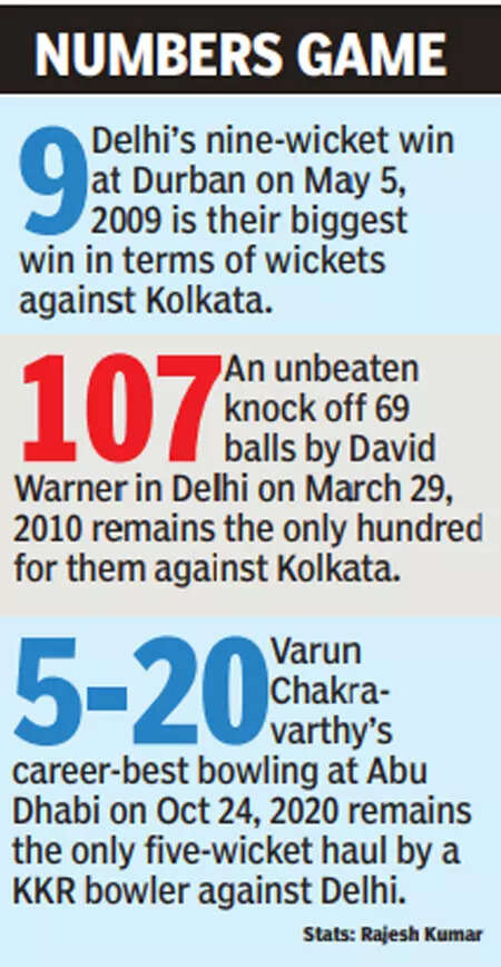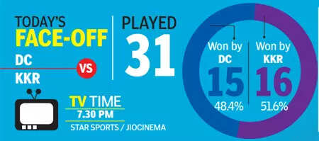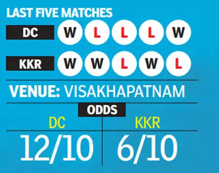 VISAKHAPATNAM: Buoyed by their first victory of the season, a 20-run win over Chennai Super Kings on Sunday, Delhi Capitals look to build on the momentum when they host Kolkata Knight Riders at the ACA-VDCA Cricket Stadium on Wednesday.
