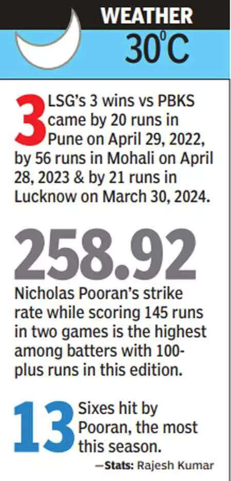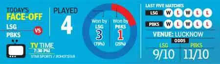 LUCKNOW: Lucknow Super Giants (LSG) will be eyeing their first victory at home this season when they take on Punjab Kings (PBKS) at the Ekana International Stadium in Lucknow on Tuesday.