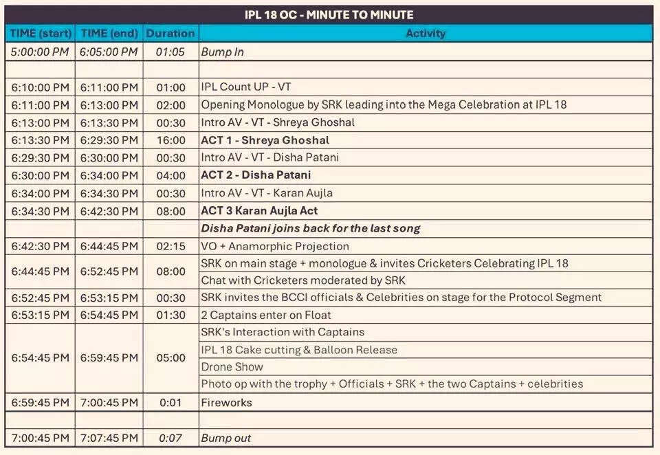 The IPL 2025 opening ceremony is scheduled for Saturday, March 22.