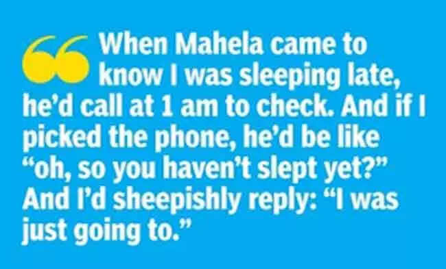 He has always been around and has been a very calming influence. When he came to know I was sleeping very late, not on time, sometimes he'd call at 1 am in the morning to check. And if I picked the phone, he'd be like "oh, so you haven't slept yet?" And I'd sheepishly reply: "I was just going to".