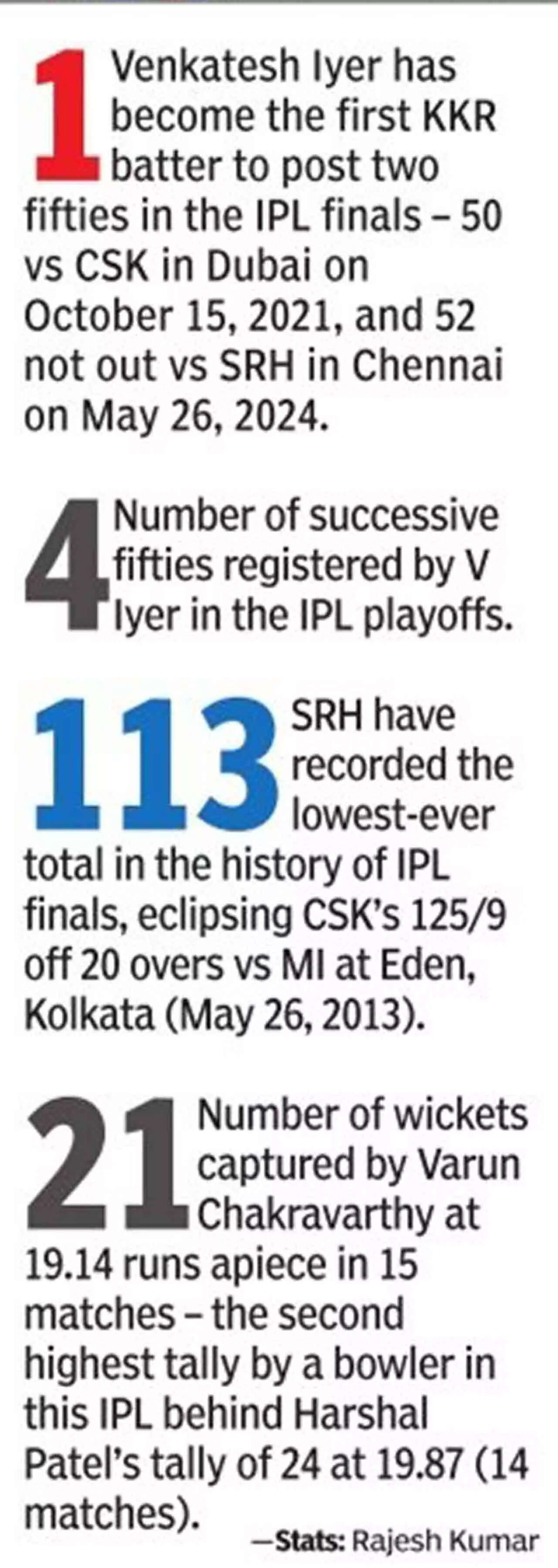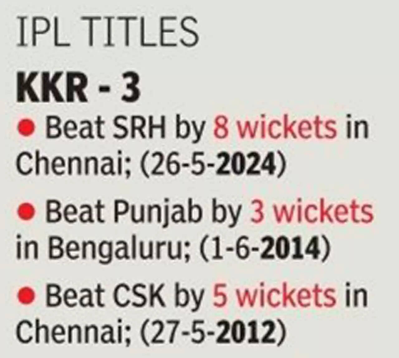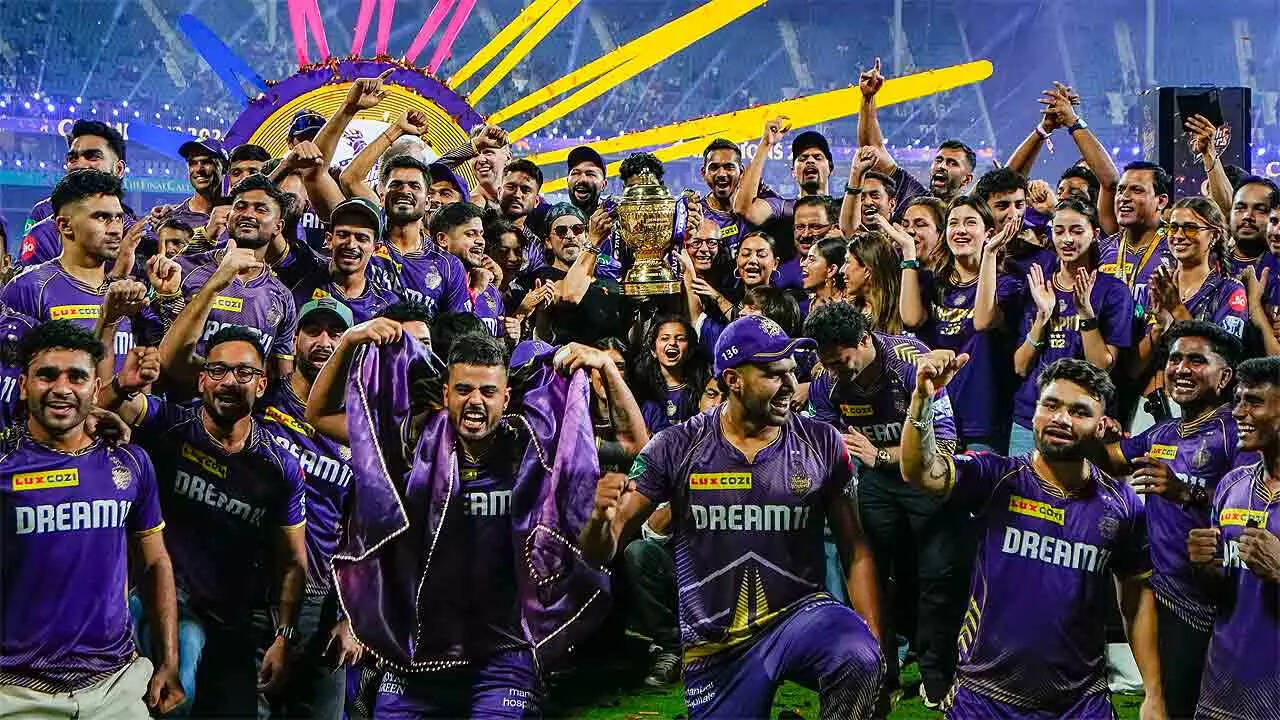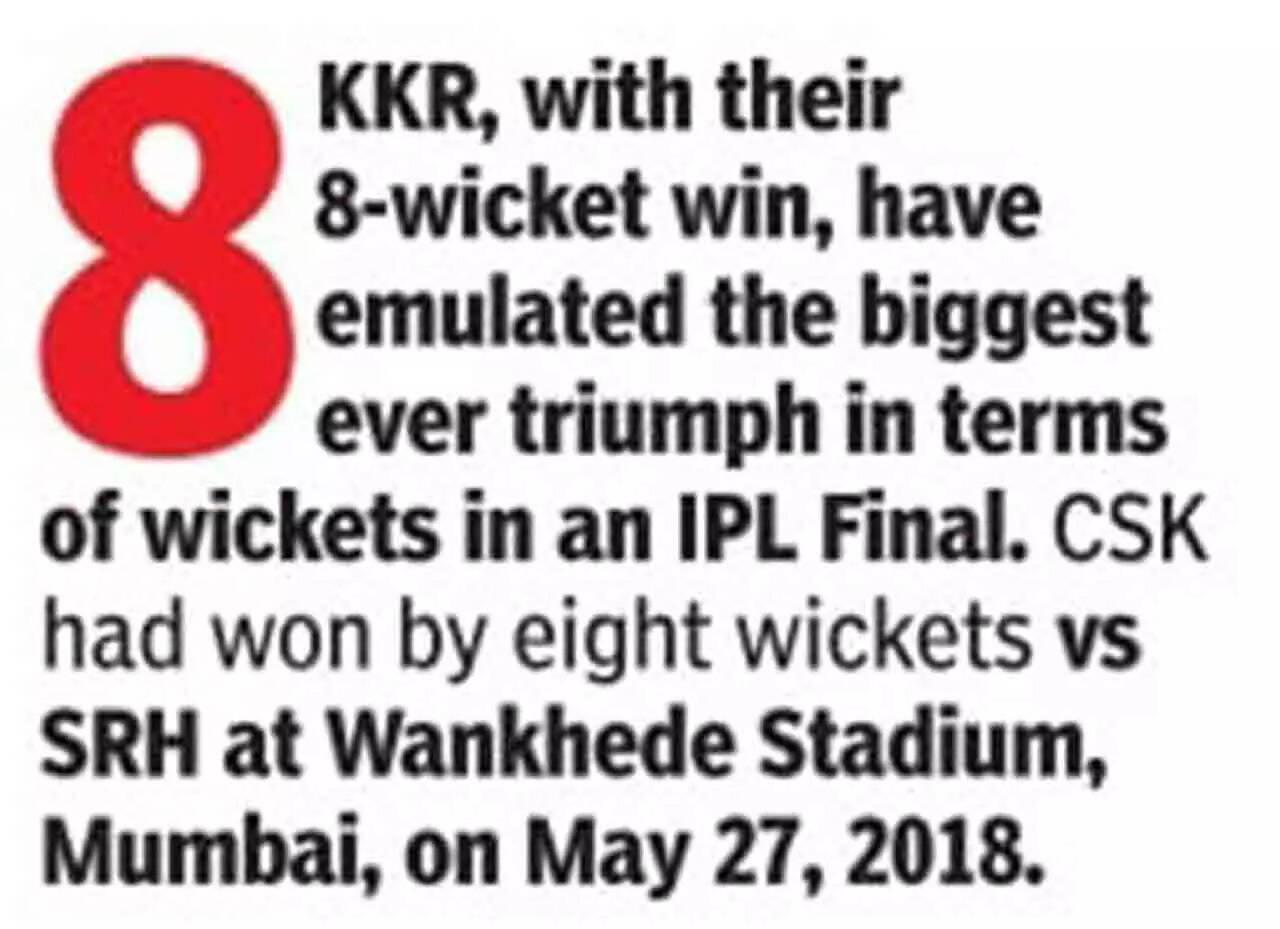 As the Shah Rukh chartbusters started blaring across Chepauk, the KKR batters had an on-field party, running away with an eight-wicket win in 10.3 overs, to present 'King Khan' with his third IPL title. Venkatesh Iyer (52 not out off 26 balls) helped himself to some fireworks as KKR completed the most one-sided IPL final in its 17-year history.
